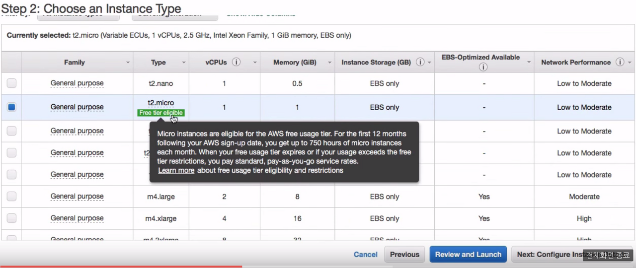 2-2 인스턴스 타입 선택 (Instance Type)