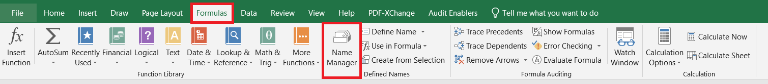 2-1. 수식(Formulas) 탭 클릭 -> 이름 관리자(Name Manager) 클릭