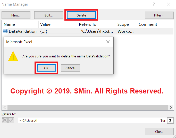 2-2. 해당 참조를 선택하여 'Delete' 버튼 클릭 -> 'OK' 버튼 클릭