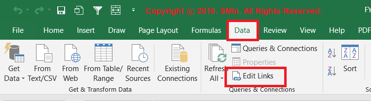 1-1. 엑셀 내 'Data(데이터) 탭' 클릭 -> 'Edit Links(링크 수정)' 클릭