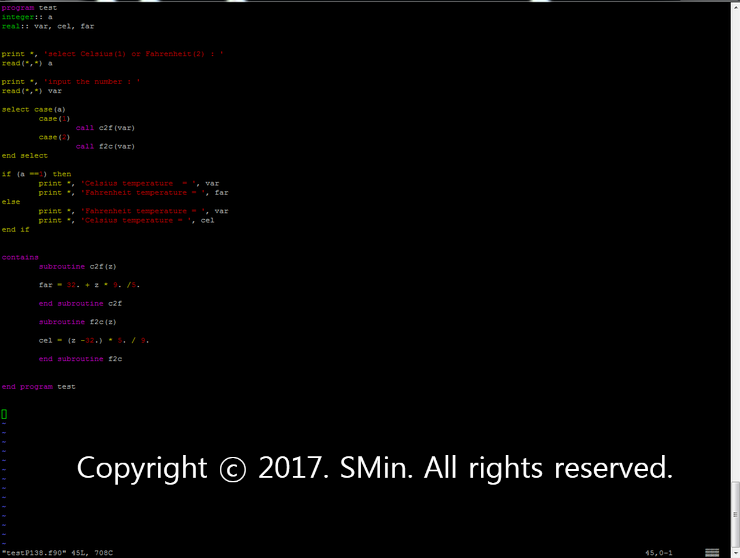 ㅁ. Subroutine 이나 Function 을 이용하여 섭씨화씨 변환 프로그램을 만들어보자.