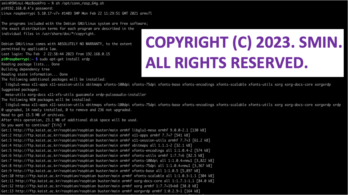 1. 라즈베리파이에 터미널 접속하여 원격접속을 위한 라이브러리를 설치한다.