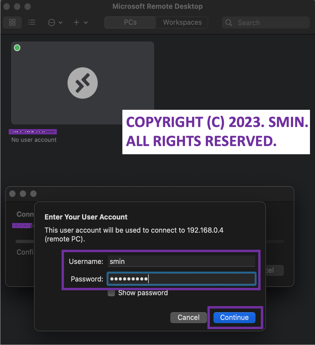 10. 라즈베리파이 접속을 위한 'ID', 'PW'를 입력한다.