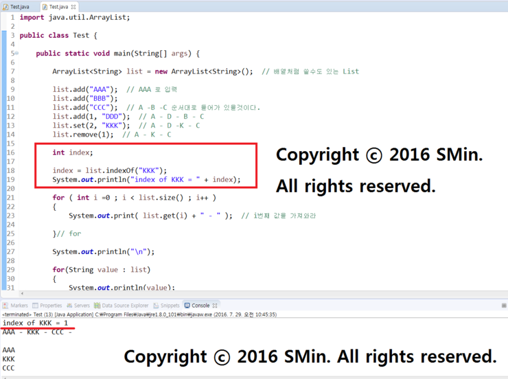 System.out.println("index of KKK = " + index); // i 번째 자리에 있다.