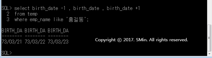 SELECT BIRTH_DATE -1, BIRTH_DATE, BIRTH_DATE +1